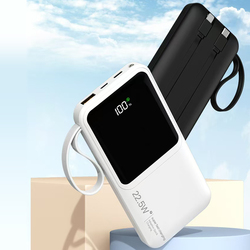 Venta caliente Banco de energía Delgado 10000mAh Carga rápida Pantalla LED 22,5 W PD W Powerbank con 4 cables para iPhone Android